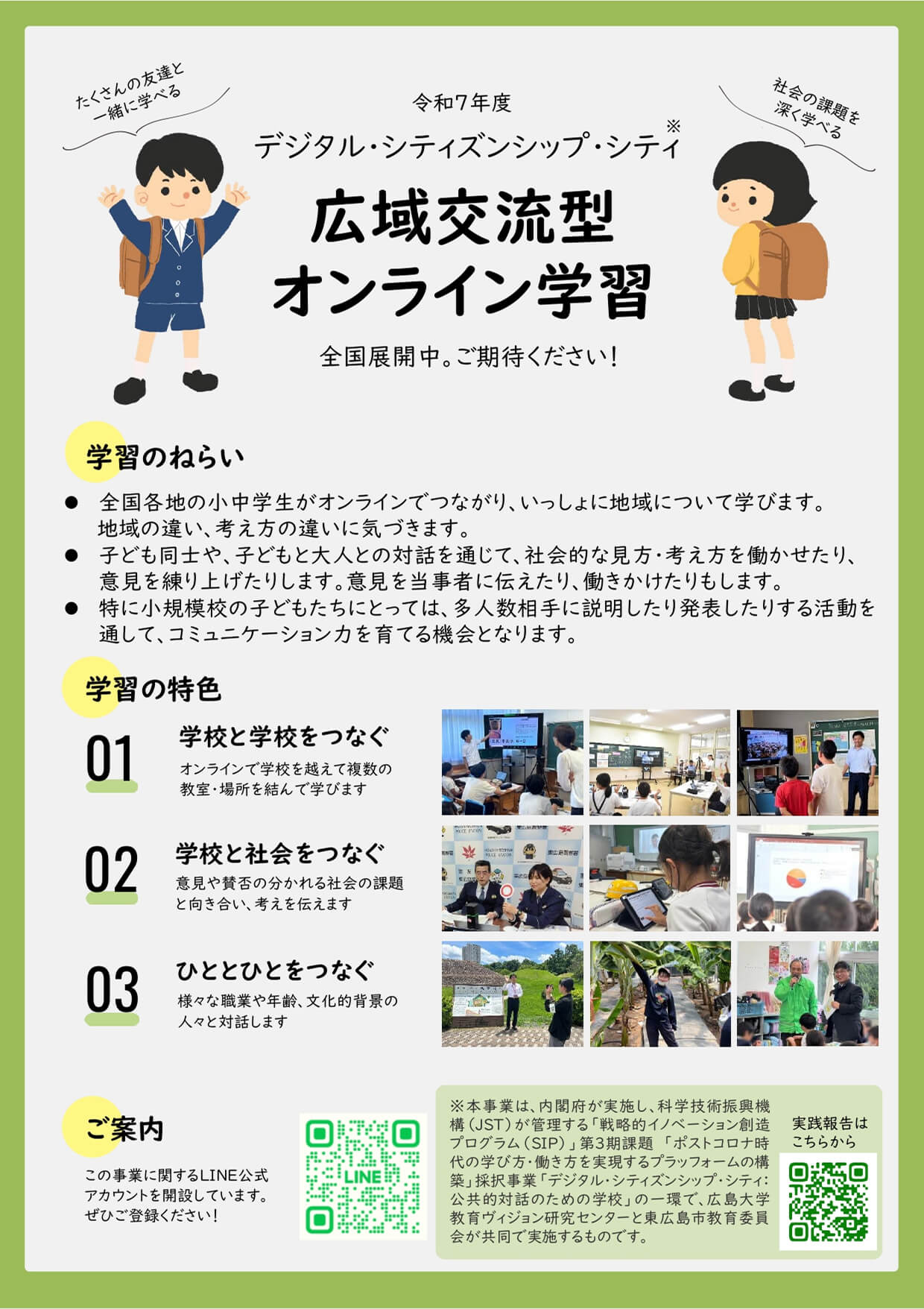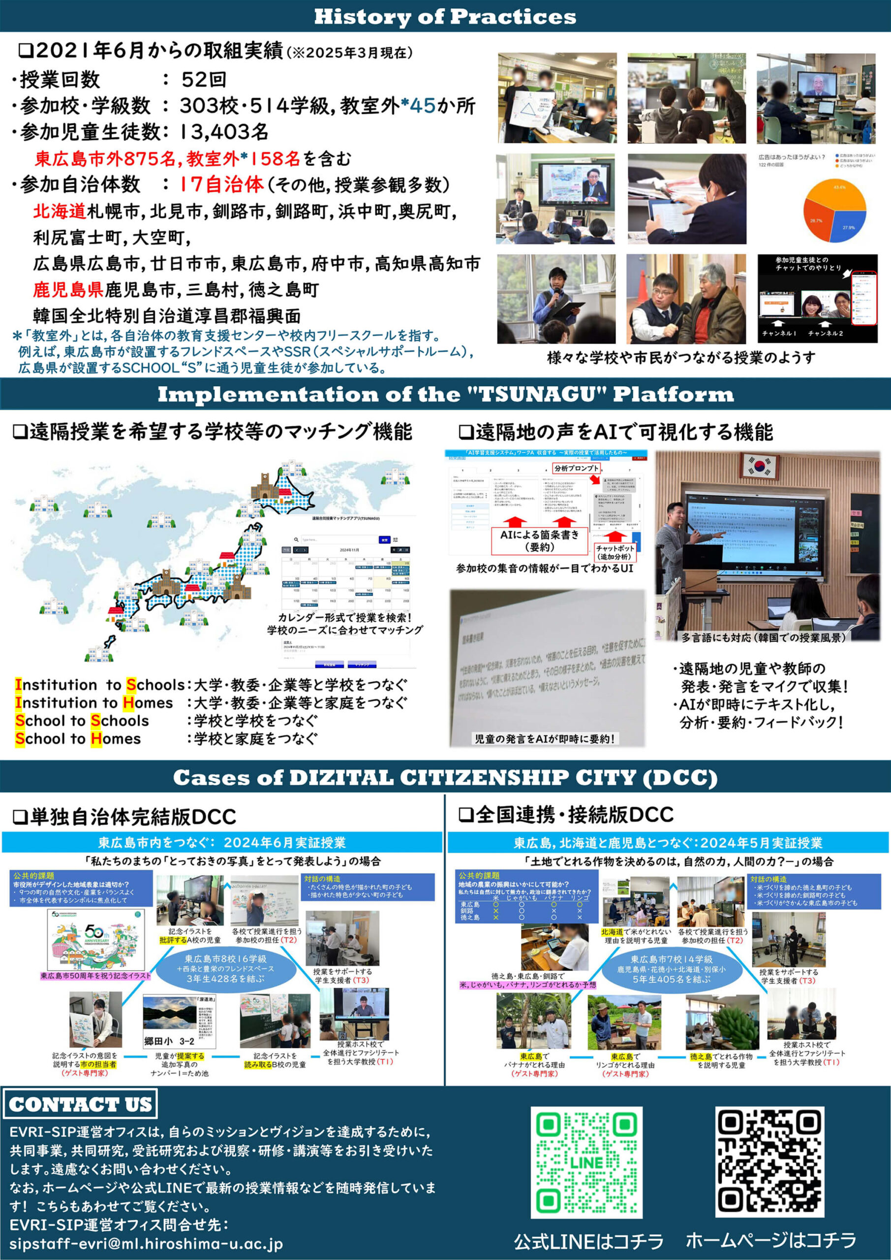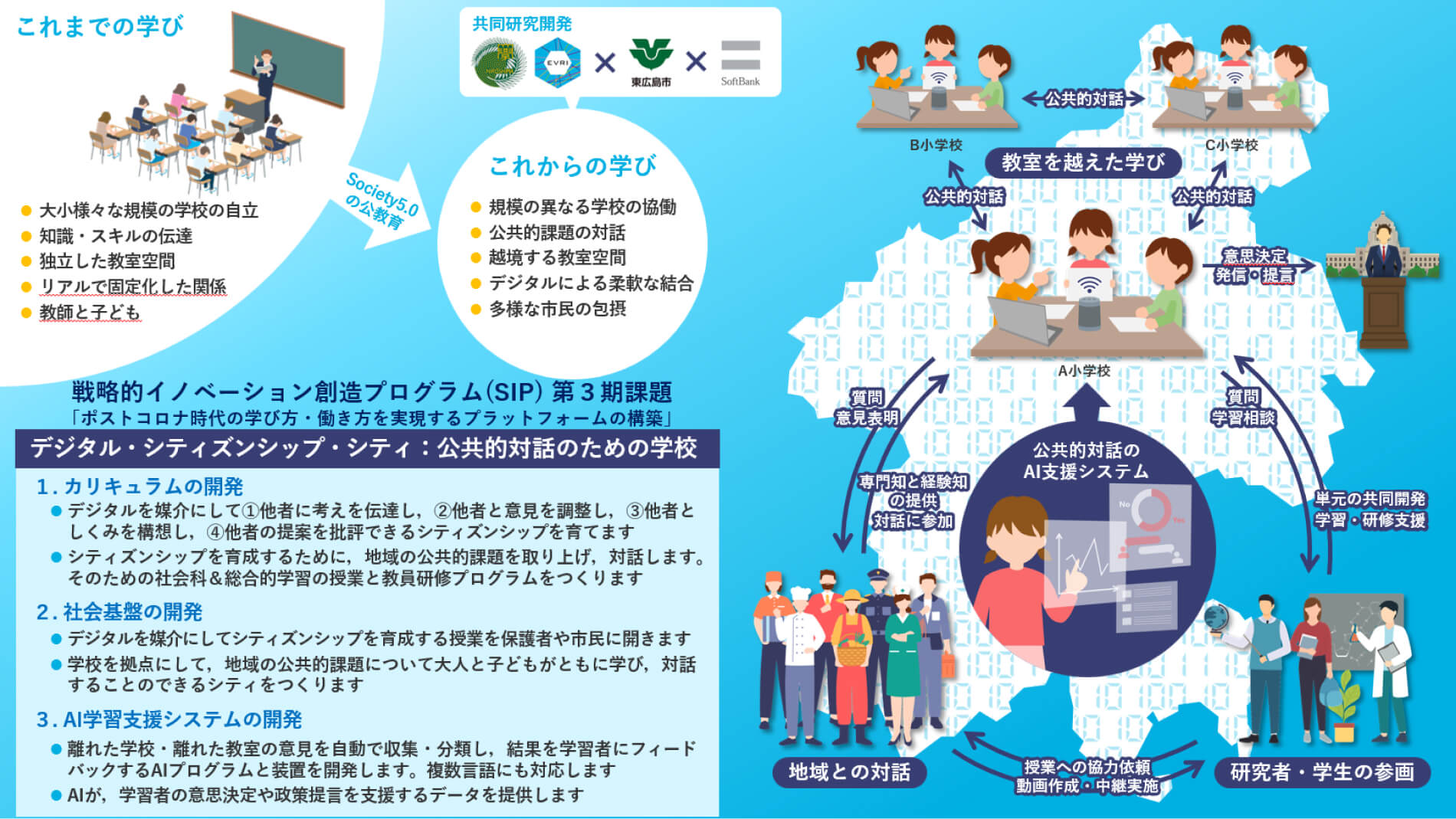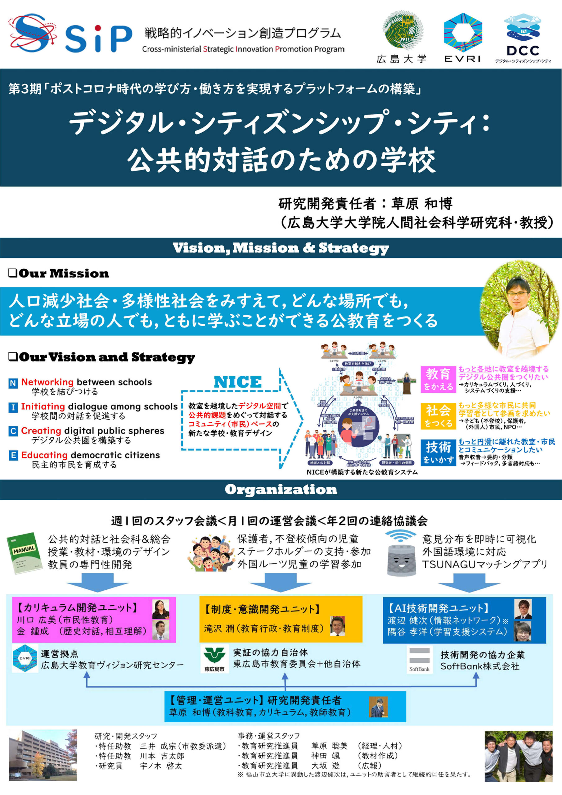 広島大学大学院人間社会科学研究科・教育ヴィジョン研究センター(EVRI)は,内閣府の「戦略的イノベーション創造プログラム(SIP)」の一環として,「デジタル・シティズンシップ・シティ:公共的対話のための学校」事業を推進しています。このサイトは,その成果を紹介するものです。