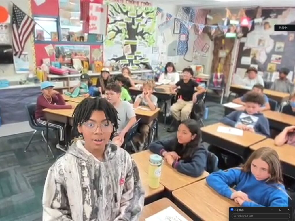 授業の冒頭,進行のCathy先生は「10月にコミュニティについて学び始めてから,ついにここまで来ました」と半年間の歩みを振り返りました 。 Cathy先生のクラスでは,プレゼン前に「他のクラスはどんな課題を抱えていると思う?」と話し合った際,児童たちから「きっと自分たちと同じような問題を抱えているはず」との意見が多く示されたといいます 。地理的に離れていても,コミュニティをより良くしたいという願いと,直面している課題には「共通性」があることが改めて確認されました 。